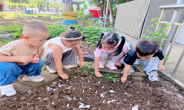 “老师,大蒜为什么是一瓣一瓣的呀?”“种下去多久能吃到蒜苗呢?”2025年9月30日,三河口幼儿园小(3)班教室里热闹非凡,一场别开生面的大蒜种植活动正在欢乐上演,他们亲手种下大蒜,体验劳动的快乐,探索自然的奥秘。 活动开始,老师拿出大蒜,引导孩子们仔细观察。孩子们睁着好奇的大眼睛,有的轻轻抚摸,感受大蒜的粗糙;有的凑上鼻子闻,被那股辛辣味呛得直咧嘴,逗得大家哈哈大笑。在轻松愉快的氛围里,老师详细讲解了大蒜的种植步骤。接着,大家来到了幼儿园的种植区,向孩子们介绍了大蒜的种植方法,从松土、播种到浇水,每一个步骤都详细讲解。孩子们听得津津有味,迫不及待地想要亲自动手尝试。瞧:孩子们拿起小铲子,认真地松士,小心翼翼地将大蒜瓣插进士里,再轻轻地覆盖上一层土。最后,他们提着小水壶,给大蒜浇上了“生命之水”,边浇边念叨:“大蒜宝宝,快喝水,快快长大!” 这次种植活动,不仅让孩子们了解了植物的生长过程,培养了他们的观察力和动手能力,更让他们在劳动中体会到了付出与收获的快乐。相信在孩子们的精心呵护下,这些大蒜一定会茁壮成长,为幼儿园增添一抹绿色的生机,让我们一起期待孩子们与这些绿色小生命共同成长的美好时光吧! (撰写:陆晓萍 审核:王煜尧)