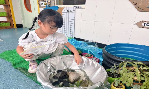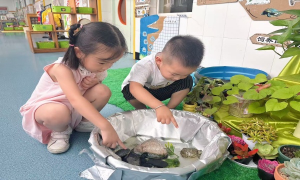 “小乌龟,你好呀!”2025年10月10日常州市天宁区三河口幼儿园小一班的宝贝带来了小乌龟,可爱的乌龟朋友常常吸引孩子们驻足观看。自由活动时、午饭过后,孩子们就围着小乌龟,你一言我一语。乌龟好可爱呀,每个乌龟长得都不一样呢。快看,它的头上还有小小的眼睛、嘴巴、鼻子呢!乌龟的尾巴短短的、细细的。 追随幼儿的兴趣,孩子们和乌龟的故事就这样开始了,宝贝们想带它们出去晒晒太阳,爬一爬,做做运动,于是就有了“带乌龟散步”、“带乌龟兜风”,还有备受瞩目的乌龟爬爬赛。比赛开始啦,小乌龟们完全迷失了方向,向各个地方爬去,这可急坏了萌娃们。于是孩子们用大积木搭建了赛道,比赛开始了,小乌龟们都沿着自己的赛道前进,“小土豆”赢啦! 这是一场充满童趣的私人订制,活动因幼儿的兴趣而生,尊重幼儿的学习方式,激发他们的好奇心,保护他们的童心,提供给他们观察的机会,聚焦幼儿的关注点,引发他们更有针对性地思考。在爬爬赛中,有两只乌龟怎么也不爬,可以怎么引诱它们呢,一起期待孩子和小乌龟故事续集吧! (撰写:李丽 审核:王煜尧) |